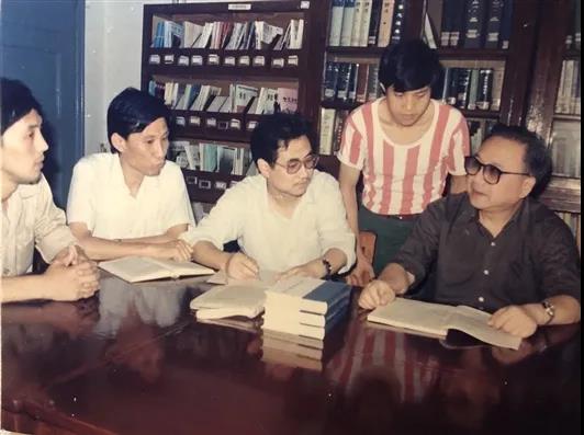 章开沅给博士生上课(左一为周洪宇,右一为章开沅,左三为马敏)。周洪宇供图