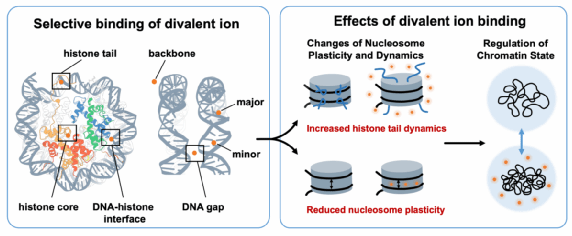 图2. 二价阳离子重塑核小体结构与动力学性质的物理机制