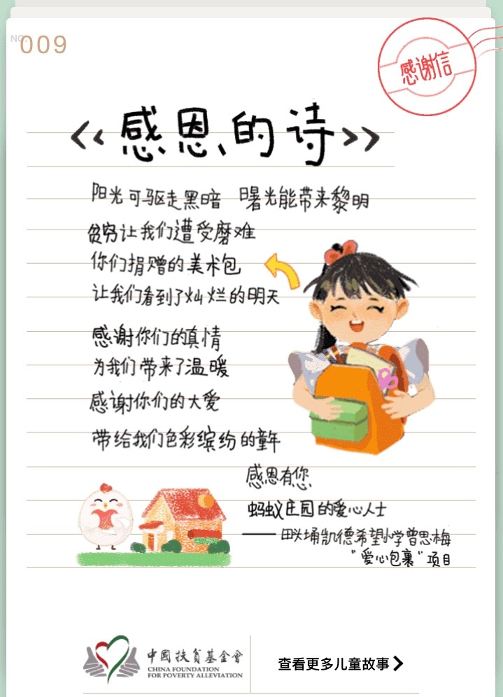 说到这里,小编不由得想起了曾经收到的蚂蚁庄园受助者的一封来信,让小编觉得自己也并不是干啥啥不行呢,不说了,喂鸡凑爱心去了!